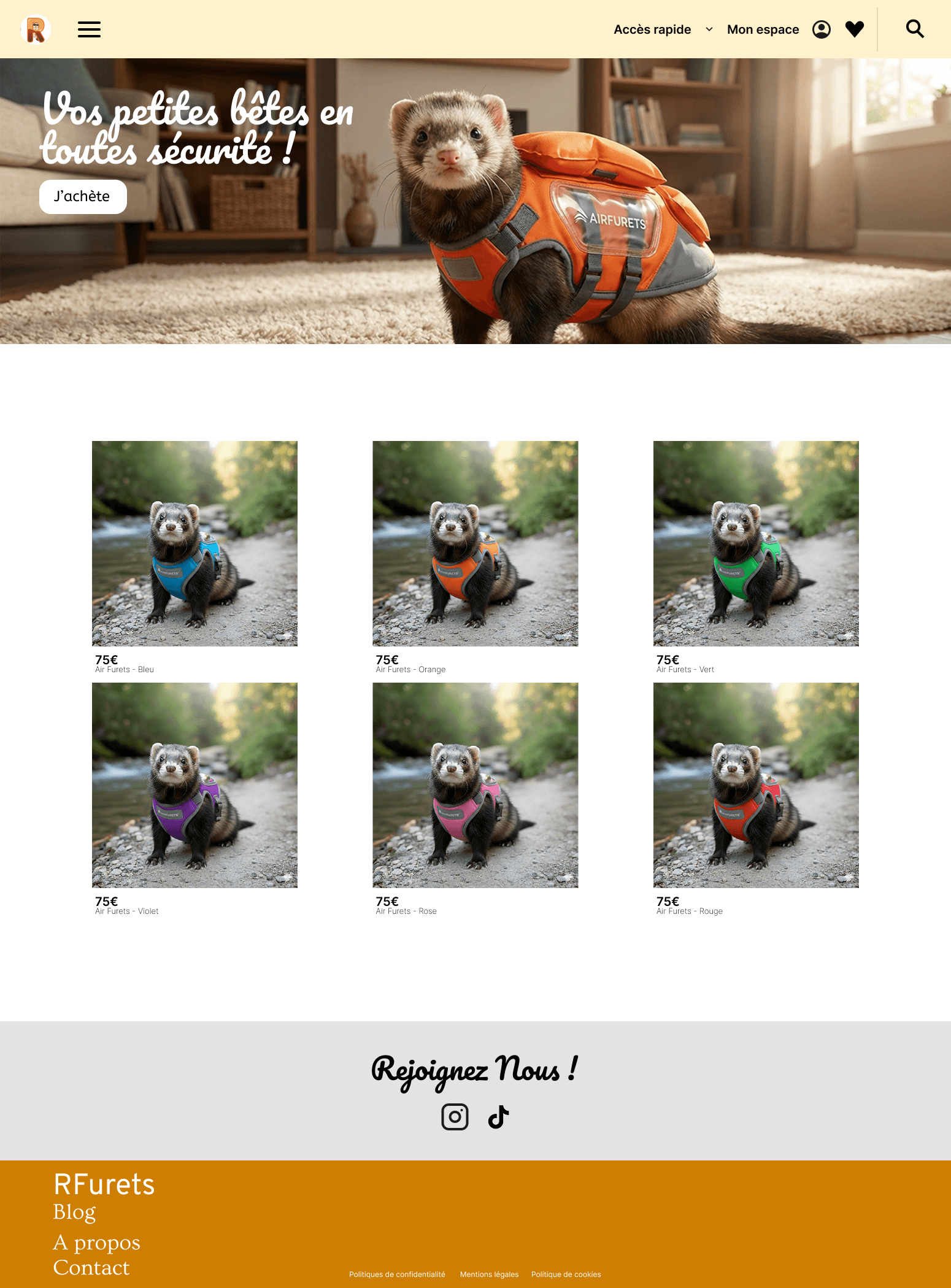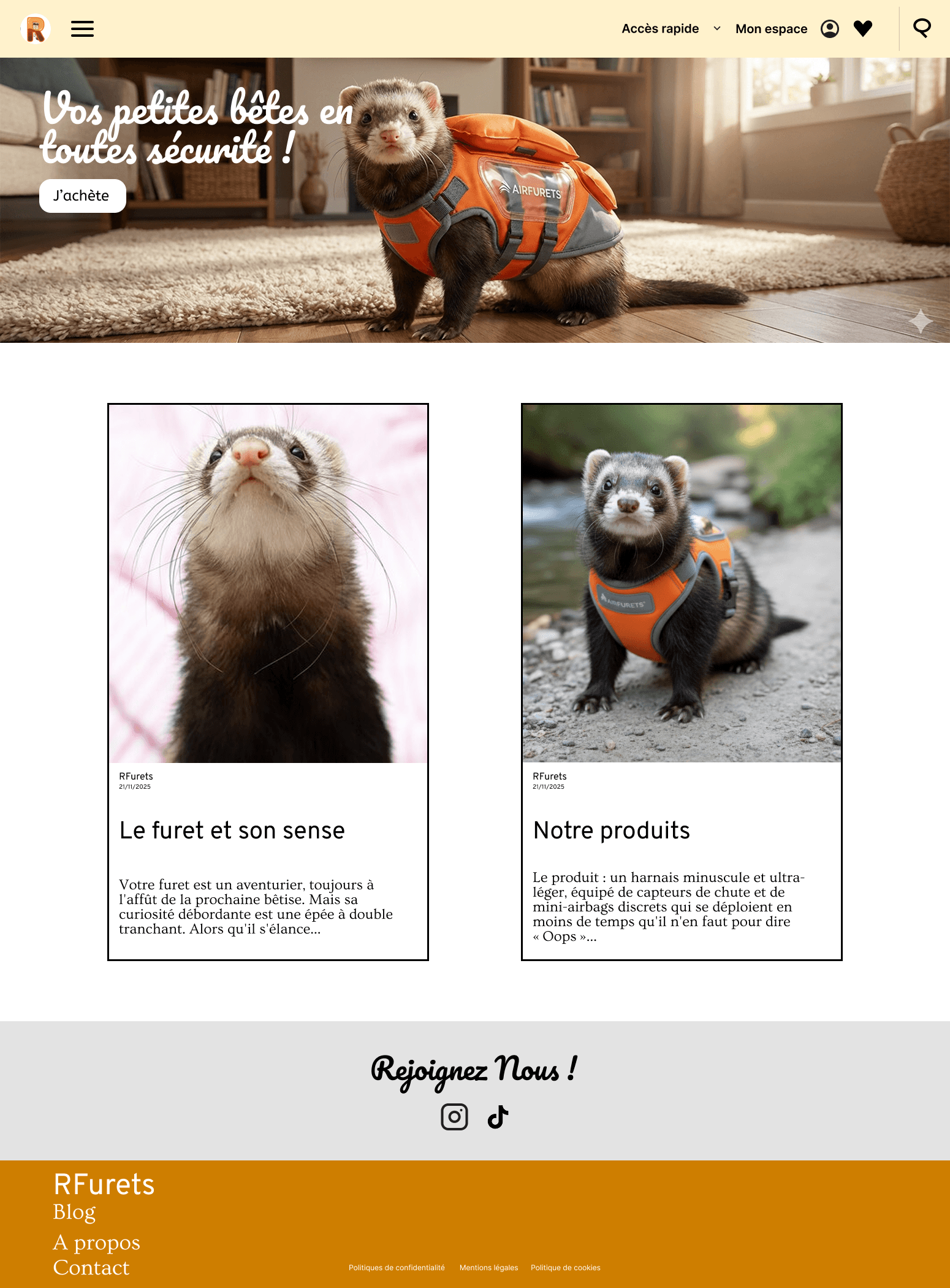 Avec mon équipe notre idée a été de crée un airbag pour furets, puis en faire un site e-commerce et un blog sur les furets.